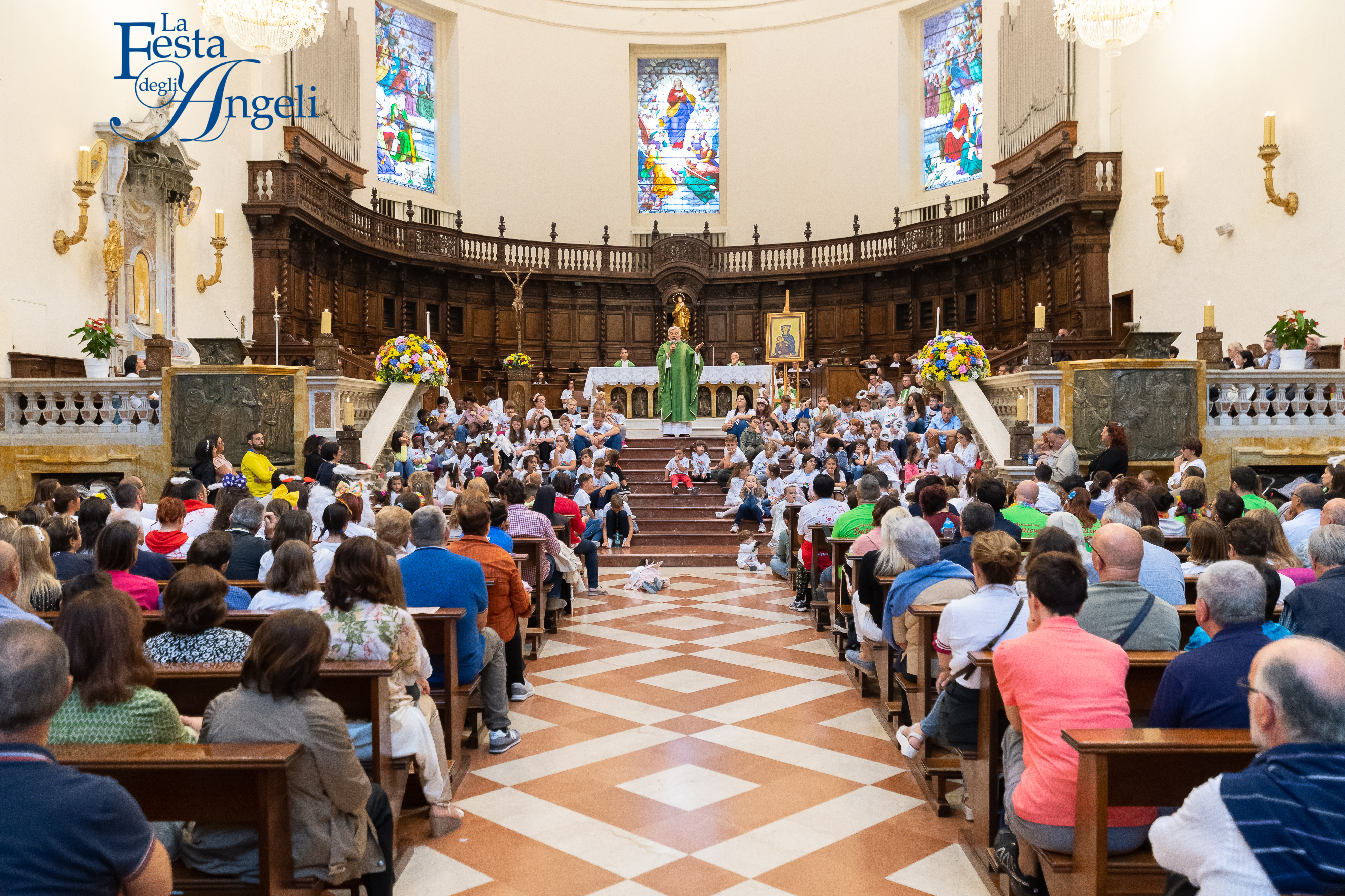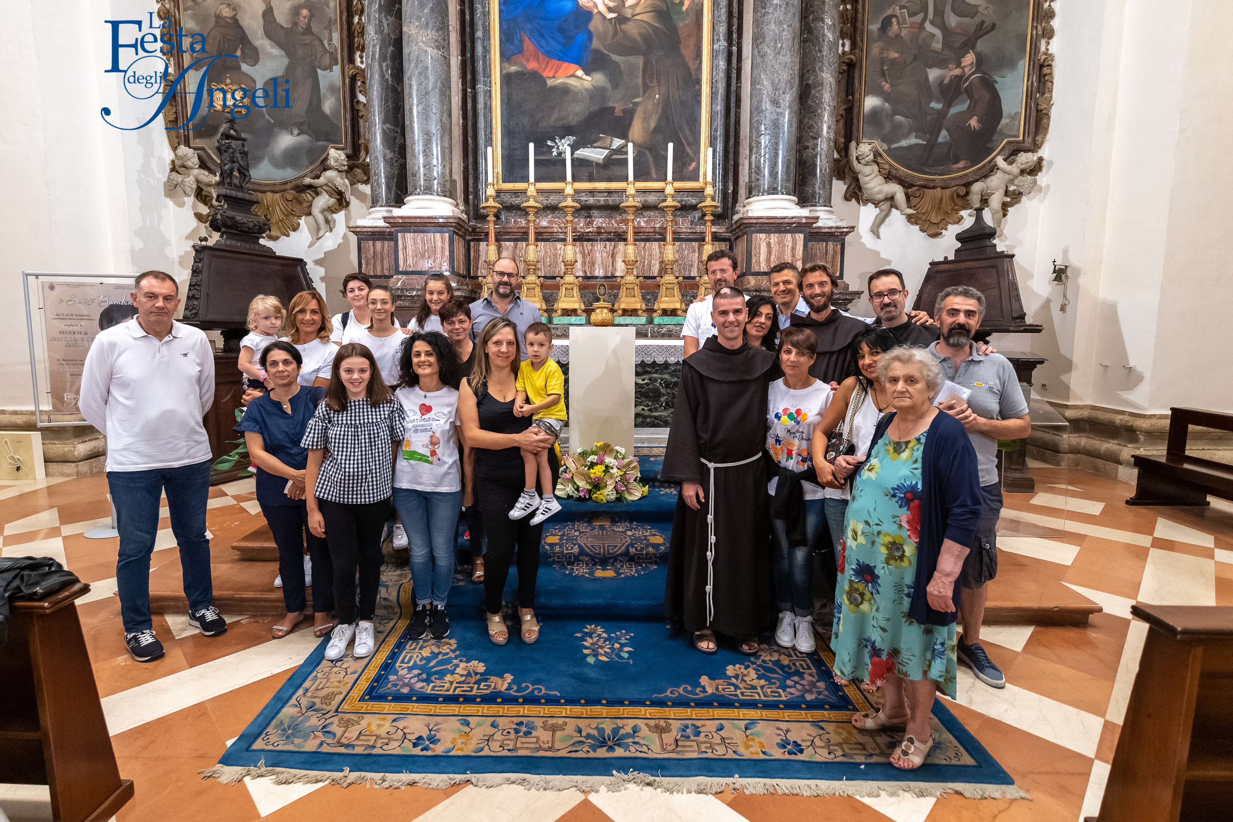 Alle ore 11.00 la consueta processione con i bambini vestiti da angioletti è entrata in chiesa e si è diretta con gioia all’altare maggiore dove, alle ore 11.30 è iniziata la messa presieduta da fr. Giuseppe Renda, custode del convento della Porziuncola, accanto a lui, tra gli altri, il parroco di Mondragone, con cui, da alcuni anni, esiste una bella relazione di amicizia e dove la festa ha iniziato un gemellaggio. Attorno alla Porziuncola il popolo della Festa e i tanti pellegrini hanno potuto sentire l’abbraccio caldo e fraterno di san Francesco che li ha riportati al cuore di questo evento e ci ha fatto “guardare in alto”, ai nostri figli in cielo, non solo per ricordare il dolore, ma per chiederne l’intercessione presso Dio.